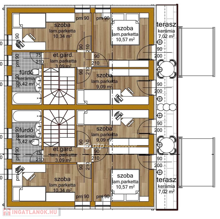 4 hálószoba: 8,1 m² | 10,6 m² | 10,3 m² | 9,1 m²