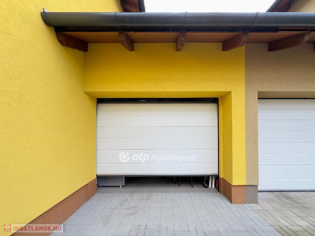 A garázs padlófűtéssel és távirányítós kapuval rendelkezik, a ház mellett pedig egy különálló, zárt kerti tároló is található.